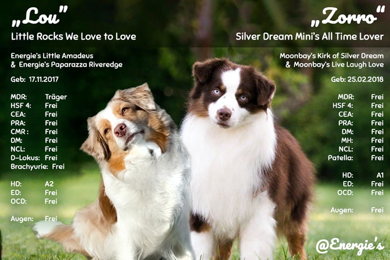 Wir erwarten von Lou und Zorro um den 17. Mai kleine süße Welpen. Es wird die Farben Red Merle w/c und Red w/c geben. Ich bin sooo gespannt auf die Welpen, es ist der erste Wurf von Lou. Ich wünsche mir genauso charakterliche einwandfreie Welpen wie die Eltern sie sind. Sie sind tolle Familienhunde und Lou ist ein super Reitbegleithund.
